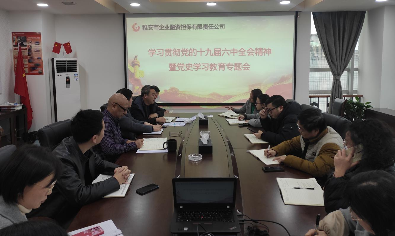 會議指出,學習貫徹黨的十九屆六中全會精神是當前和今后一個時期的一項重要的政治任務。全體黨員干部要充分認識黨的十九屆六中全會的重大意義,準確把握全會精神實質(zhì)和豐富內(nèi)涵,增強“四個意識”,堅定“四個自信”,做到“兩個維護”。要把學習黨的十九屆六中全會精神貫穿到黨史學習教育中去,把全會精神落實到服務中小微企業(yè)和三農(nóng)的具體實踐中、體現(xiàn)到推動公司高質(zhì)量發(fā)展的創(chuàng)新舉措上。